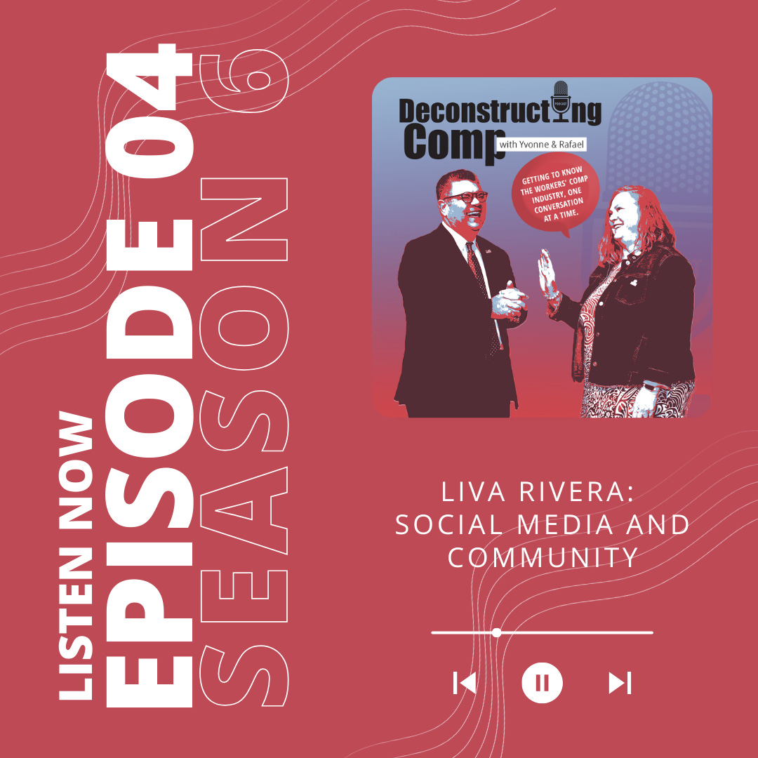 Season 6 of Deconstructing Comp Podcast is underway! Catch our latest episode with Liva Rivera; a lively conversation about the power of social media in building relationships, expanding professional networks, and supporting mentorship within the workers’ compensation community. Available on YouTube and your favorite podcast streaming platform (links below)